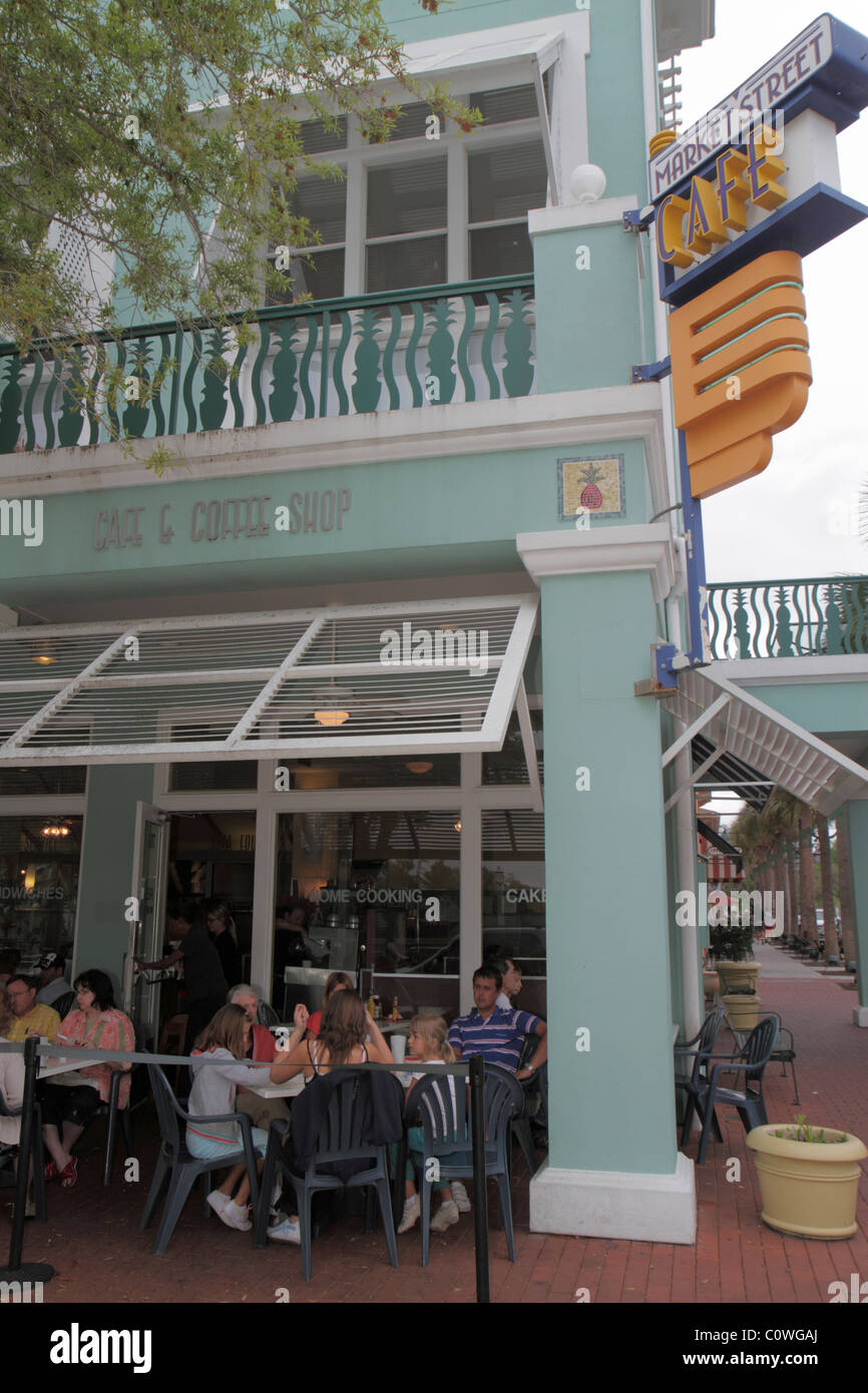 Florida Osceola County Orlando Orlando Kissimmee Celebration Market Street Cafe Al Fresco Sidewalk Outside Outdoors Tables Dining Visitors Travel Trav Stock Photo Alamy