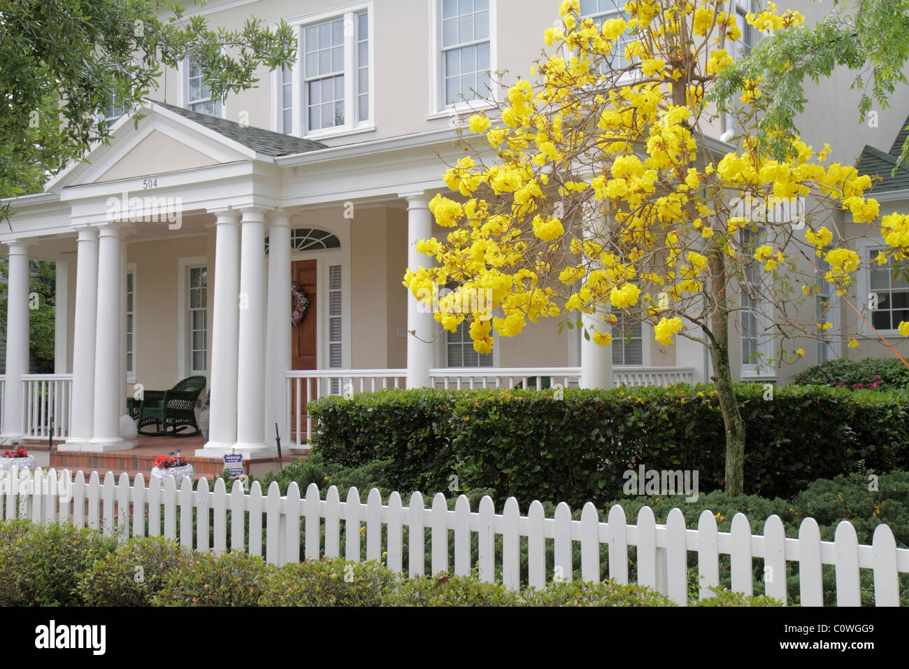 Florida Osceola County Orlando Orlando Kissimmee Celebration Planned Community White Picket Fence Porch House Houses Home Houses Homes Residence Housi Stock Photo Alamy
